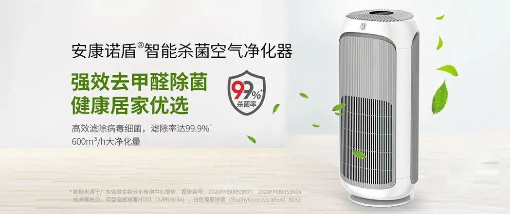 安康諾盾智能殺菌空氣凈化器,擁有高達(dá)600m3/h(顆粒物)+150m3/h(甲醛)的CADR值,針對35-60m3的房間,實現(xiàn)空氣凈化只需5分鐘。
