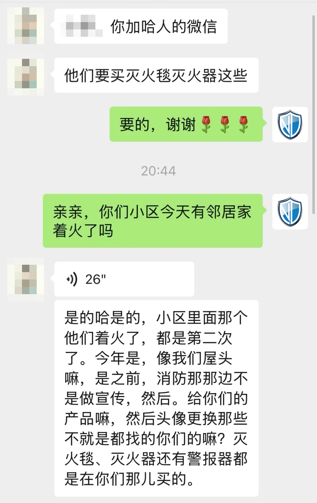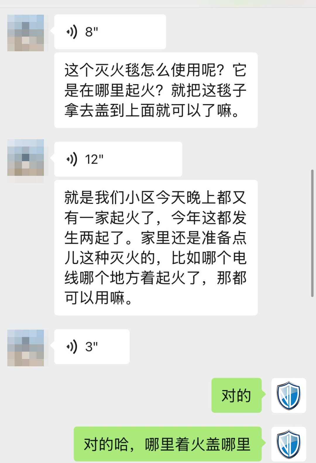 劉女士的分享很快引起了鄰居們的關(guān)注。王女士(化名)是第一個(gè)聯(lián)系安康諾盾客服的:“今年小區(qū)都發(fā)生兩起火災(zāi)了,家里還是準(zhǔn)備點(diǎn)滅火的器材,萬(wàn)一發(fā)生火災(zāi)還能用上,聽(tīng)了劉女士的介紹,立馬下單了一套。”
